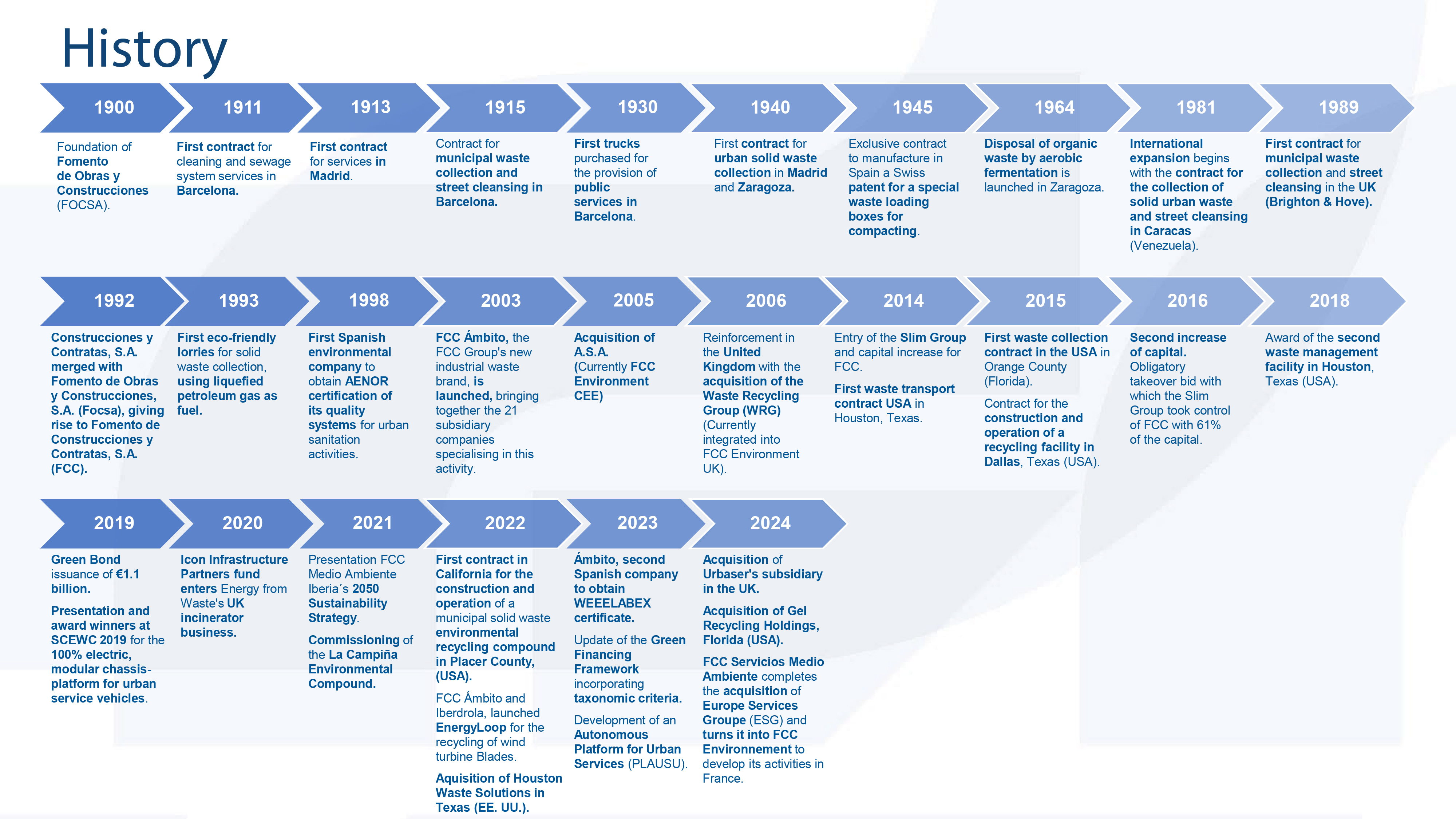 For 125 years, the FCC Group's Environmental Services area has provided municipal services and end-to-end waste management, serving more than 78 million people in 5,650 municipalities.