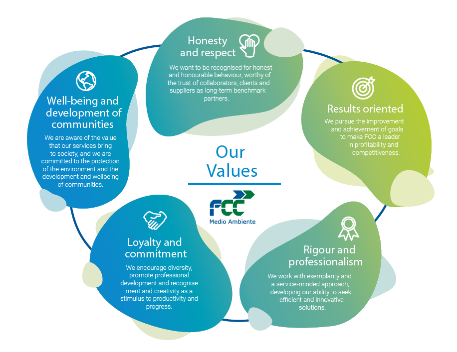 Two mechanisms are used to guarantee our commitment to ethics and integrity. One is the Code of Ethics and Conduct, the highest-ranking standard in FCC Environment that establishes the guidelines for conduct to be followed by all company employees. The other one is the Whistleblowing Channel, through which any employee can report actions that fail to observe our Code of Ethics and Conduct.