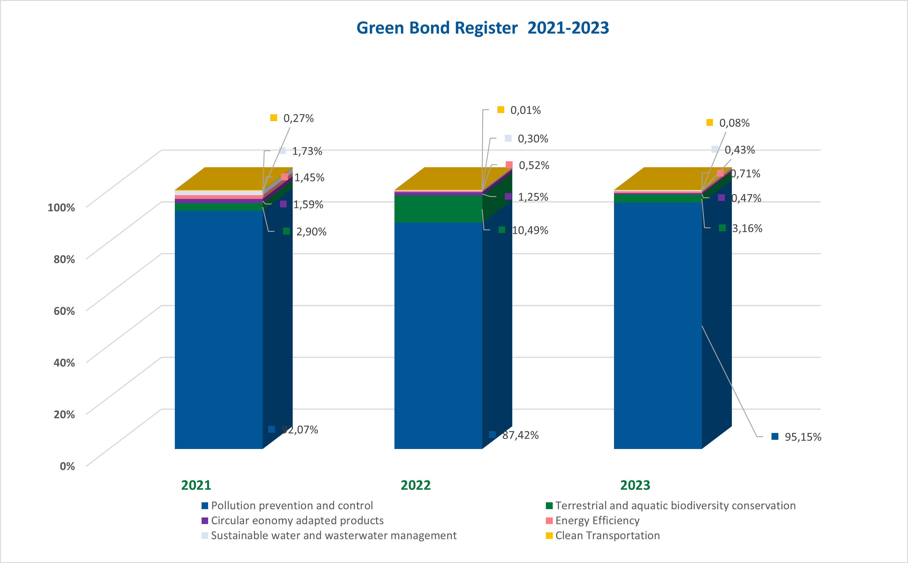 The information on the use of funds refers to the allocations made during the year 2023 and includes projects carried out during 2021, 2022 and 2023, having allocated the total of €600 million from the bond issued on 30 October 2023, with a 6-year maturity.