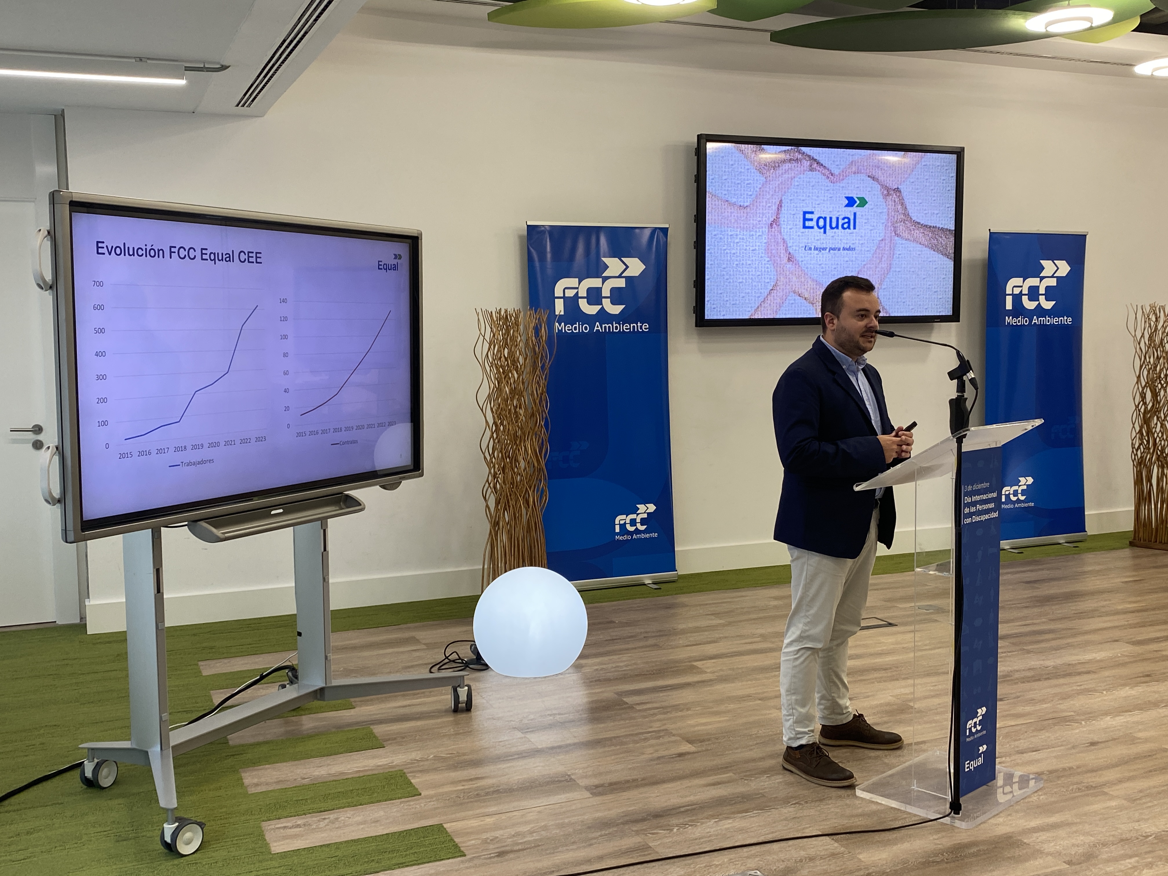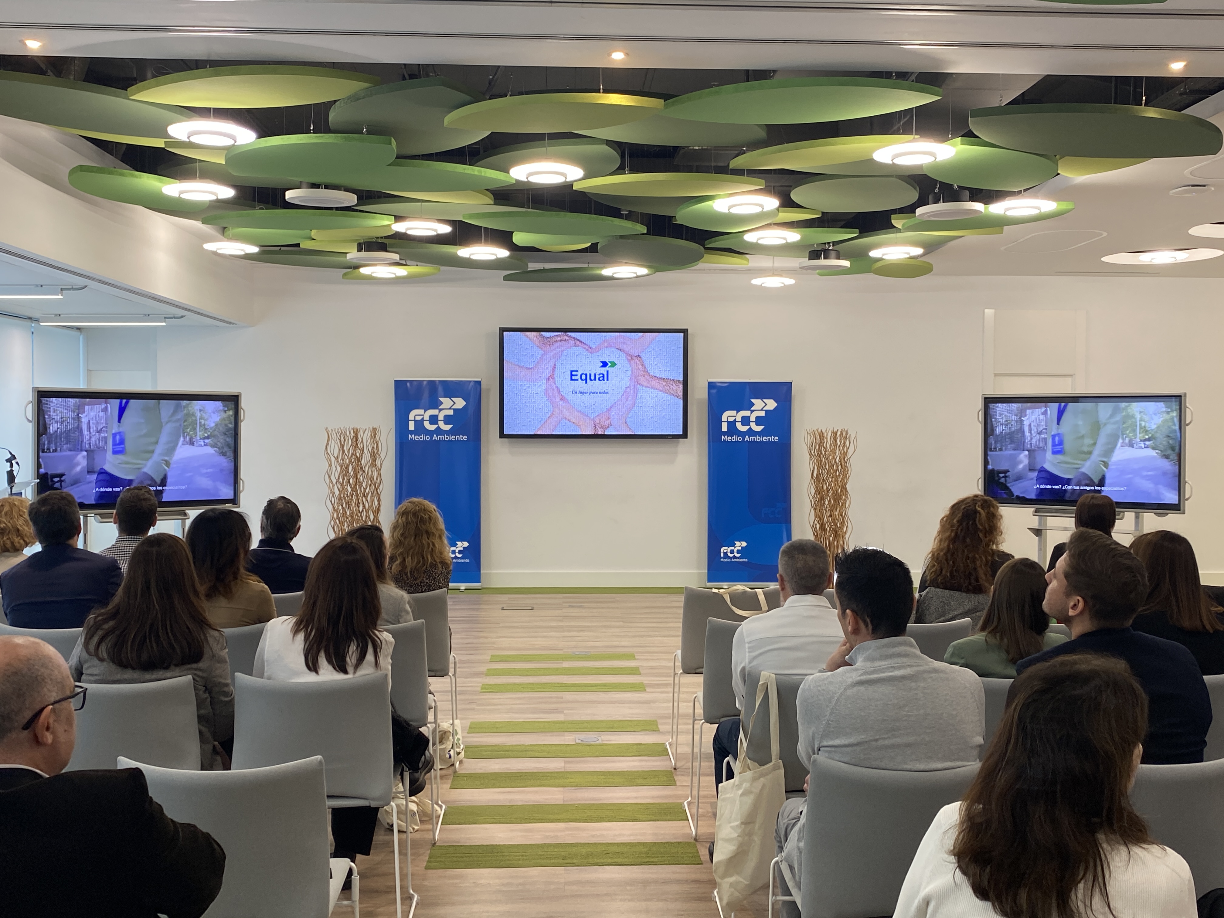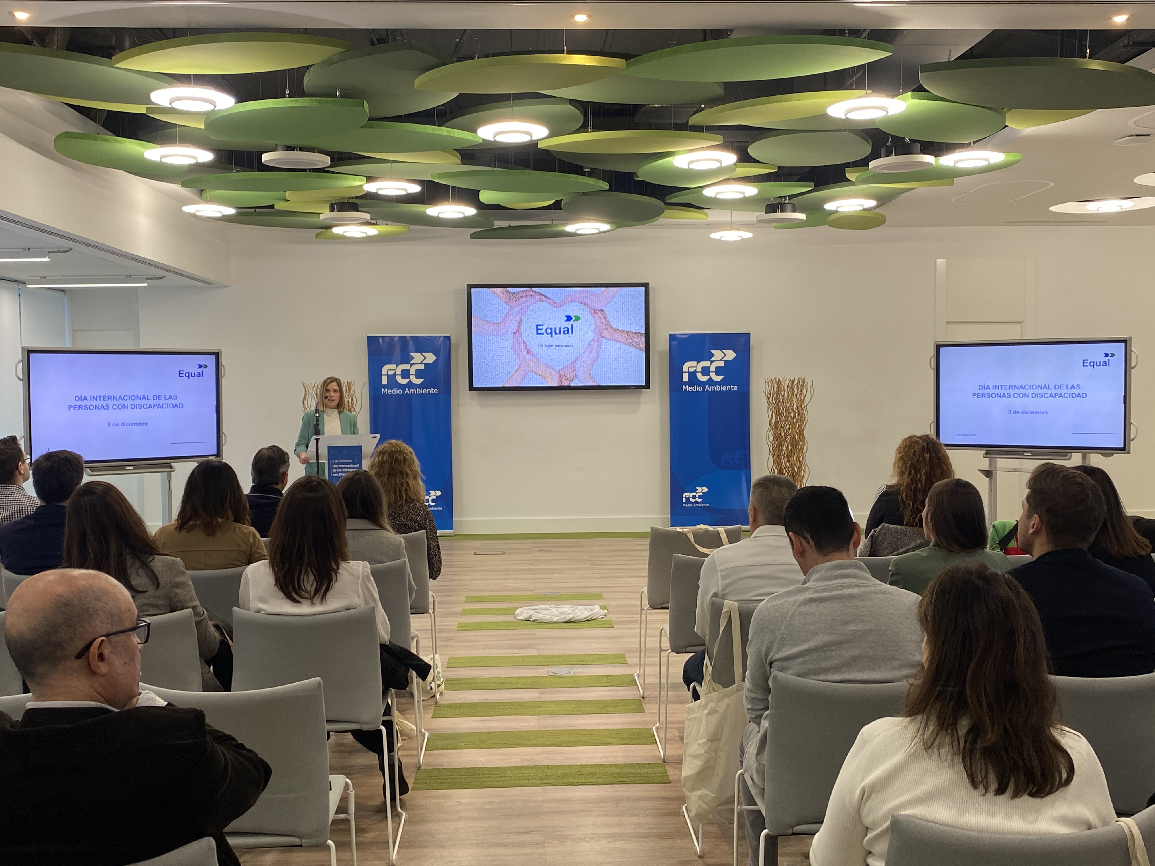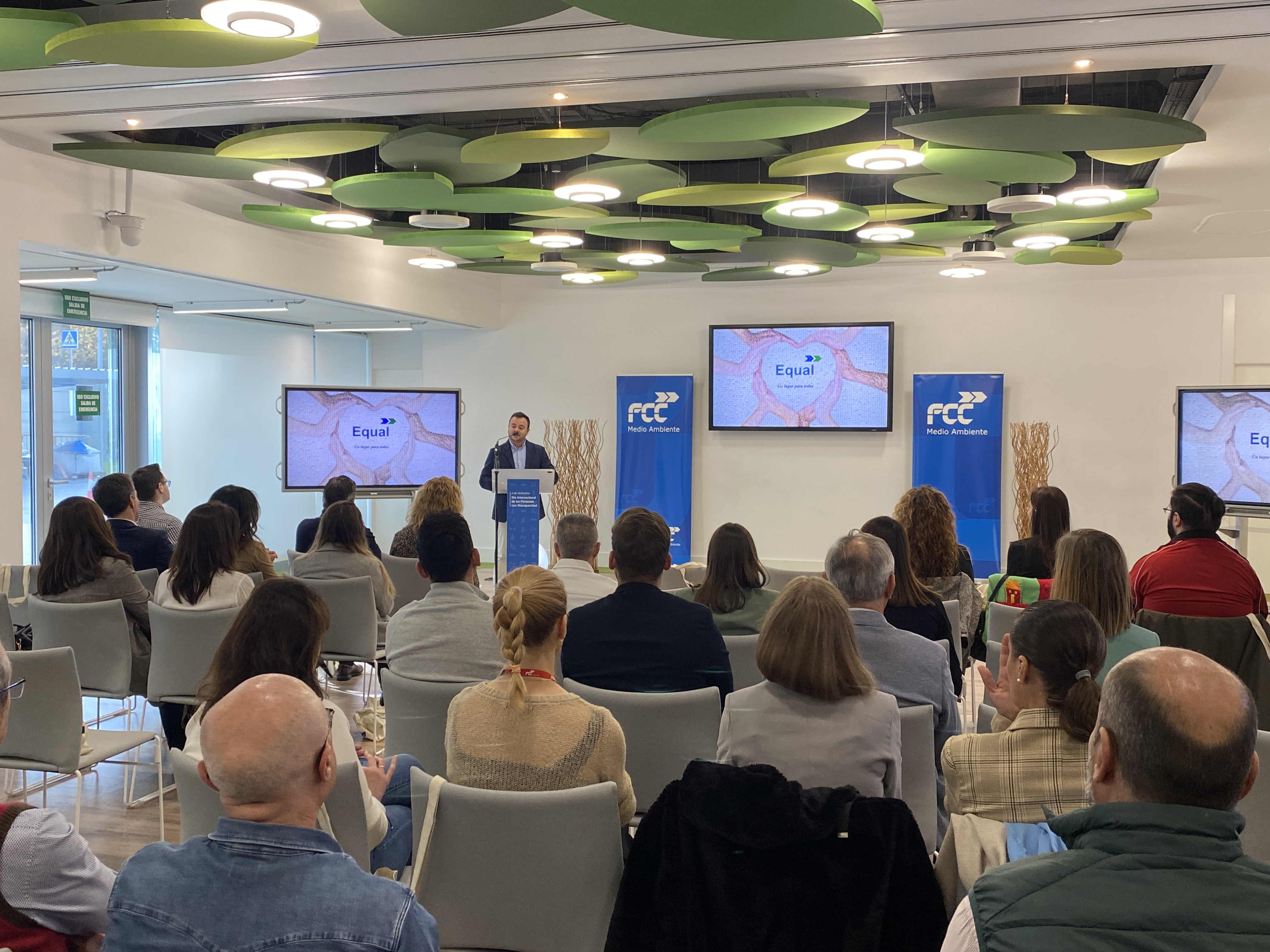 El pasado viernes 1 de diciembre se celebró un acto presencial en la sede corporativa de FCC en Las Tablas (Madrid) impulsado por las tres delegaciones de FCC Equal (Comunidad Valenciana, Andalucía y Castilla y León) y que se pudo seguir en directo de manera telemática. El evento contó con la presencia de representantes y personas trabajadoras de ambas empresas, miembros de organizaciones sindicales, colaboradores y clientes, con el fin de compartir sus experiencias y vivencias en la compañía en diferentes formatos: una presentación, una mesa redonda e incluso una actuación de psicoballet.