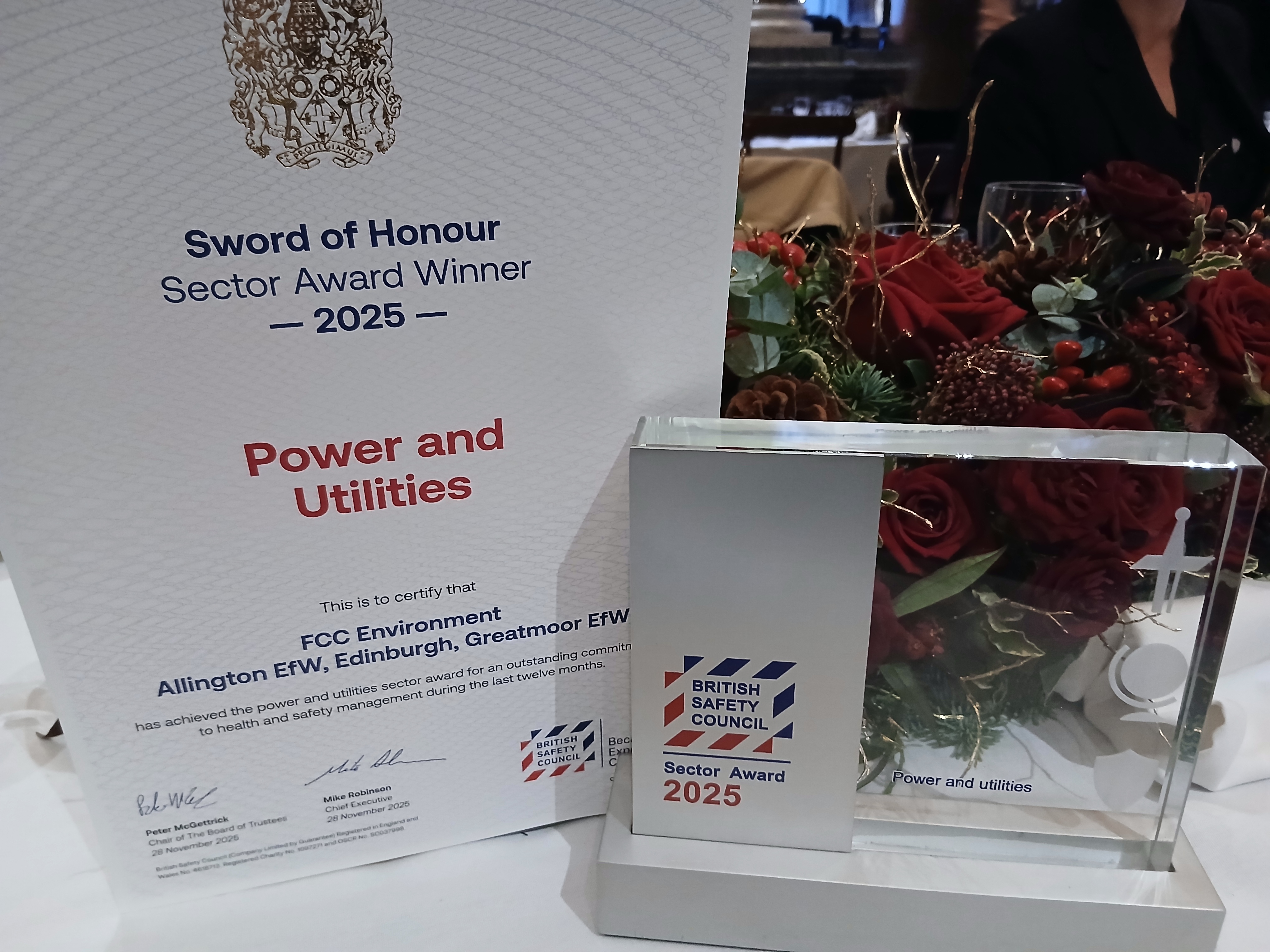 FCC Environment UK, filial de FCC enviro en el Reino Unido y compañía líder en gestión de recursos y residuos del país, ha sido premiada con tres nuevas Swords of Honour (Espadas de Honor) por parte del British Safety Council (Consejo de Seguridad Británico). Estos galardones, asignados a sus plantas de valorización energética de Millerhill (Escocia), Allington (Kent) y Greatmoor (Aylesbury), se suman a los cinco reconocimientos ya recibidos, con los que ya acumula un total de ocho Espadas.