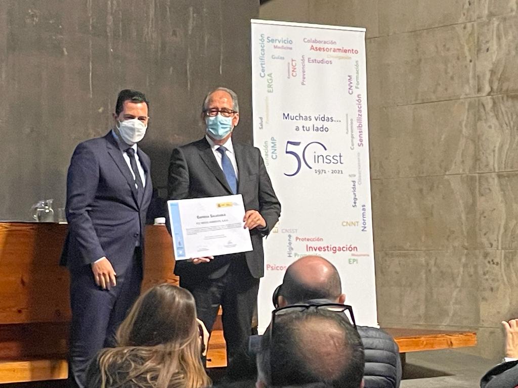 En el acto, FCC Medio Ambiente recibió dos Reconocimientos: a las Buenas Prácticas en Promoción de la Salud en el Trabajo, y a la Sostenibilidad del programa de Promoción de la Salud en el Trabajo, ambos otorgados por el INSST en colaboración con la Red Europea de Promoción de la Salud en el Trabajo (ENWHP) y la Red Española de Empresas Saludable (REES).